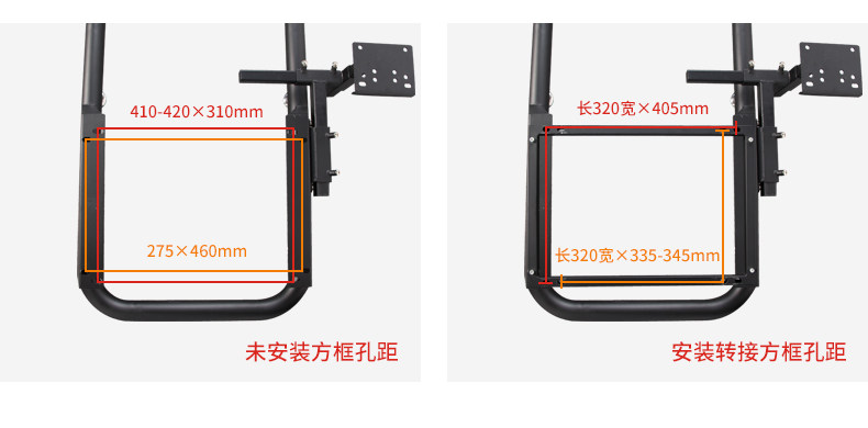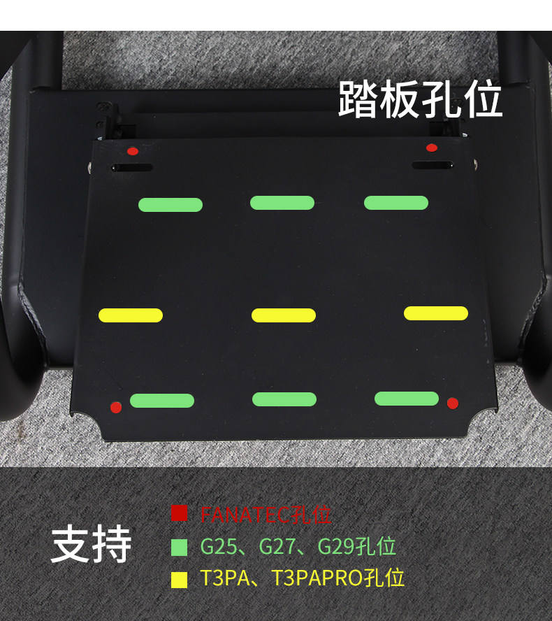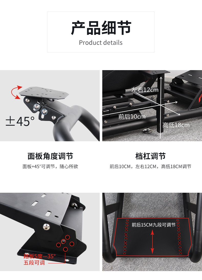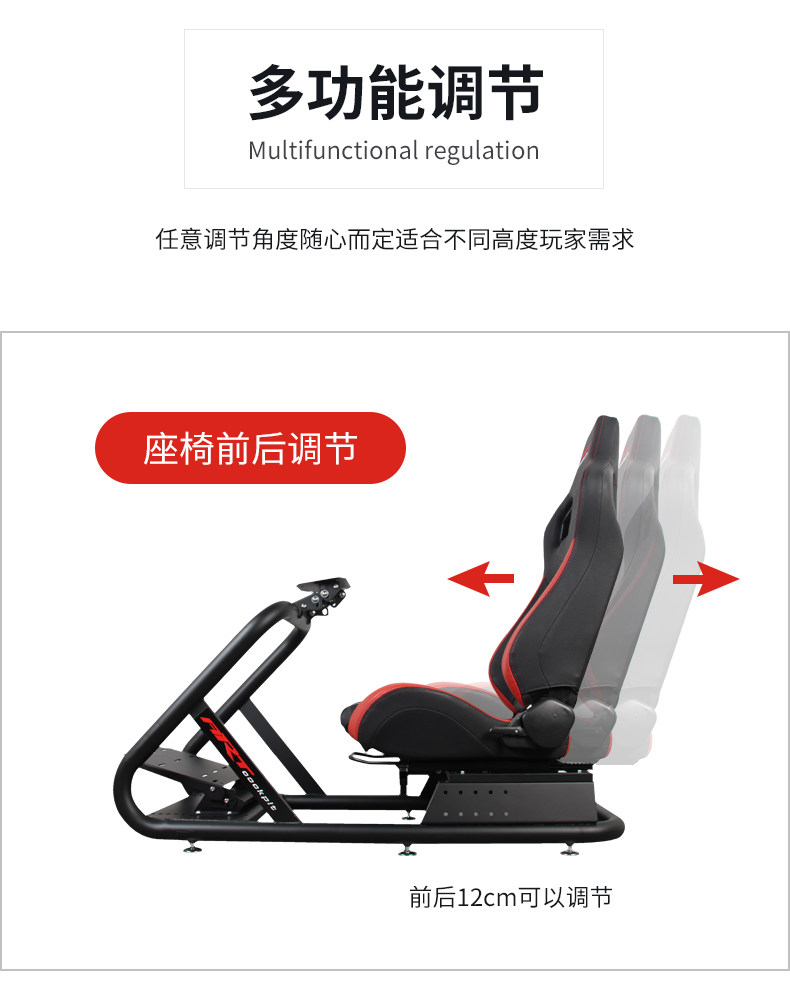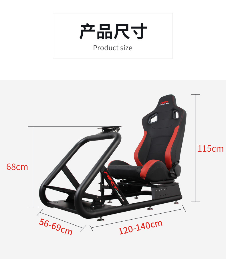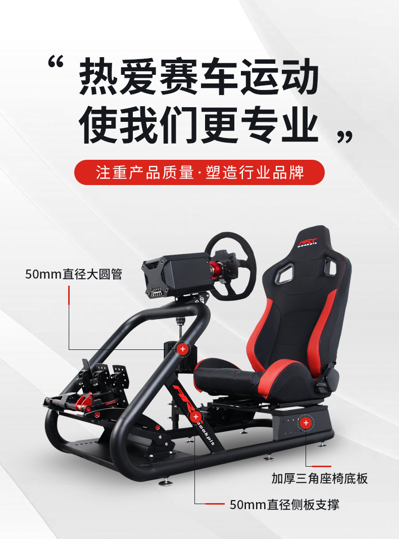 PRO一体式座椅支架,采用50方圆管,适合力回馈较大的方向盘,仿真车驾驶体验,搭配AD02皮椅、SPO绒椅和桶椅